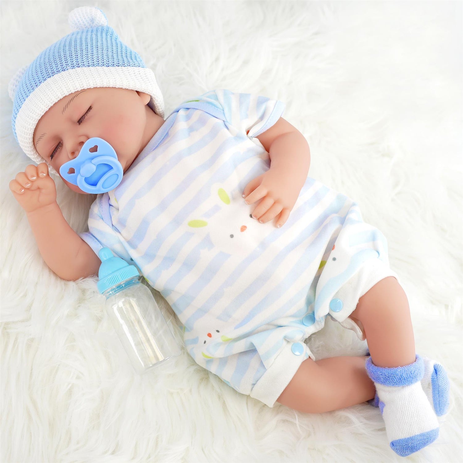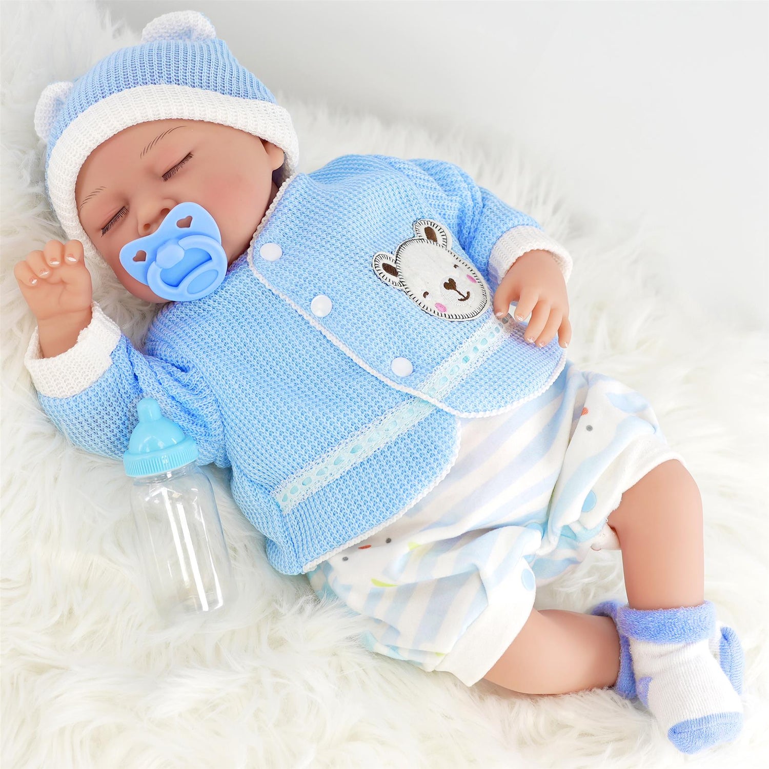 The Magic Toy Shop Bibi Doll's "Periwinkle" is a 20-inch reborn sleeping boy doll featuring a realistic look and feel. Made from soft vinyl and fabric, this lifelike baby doll comes with accessories like a bottle and birth certificate. Perfect as baby dolls for girls and boys, it offers a genuine nurturing experience. Ideal for collectors and children, it’s a charming addition to any reborn dolls collection.
