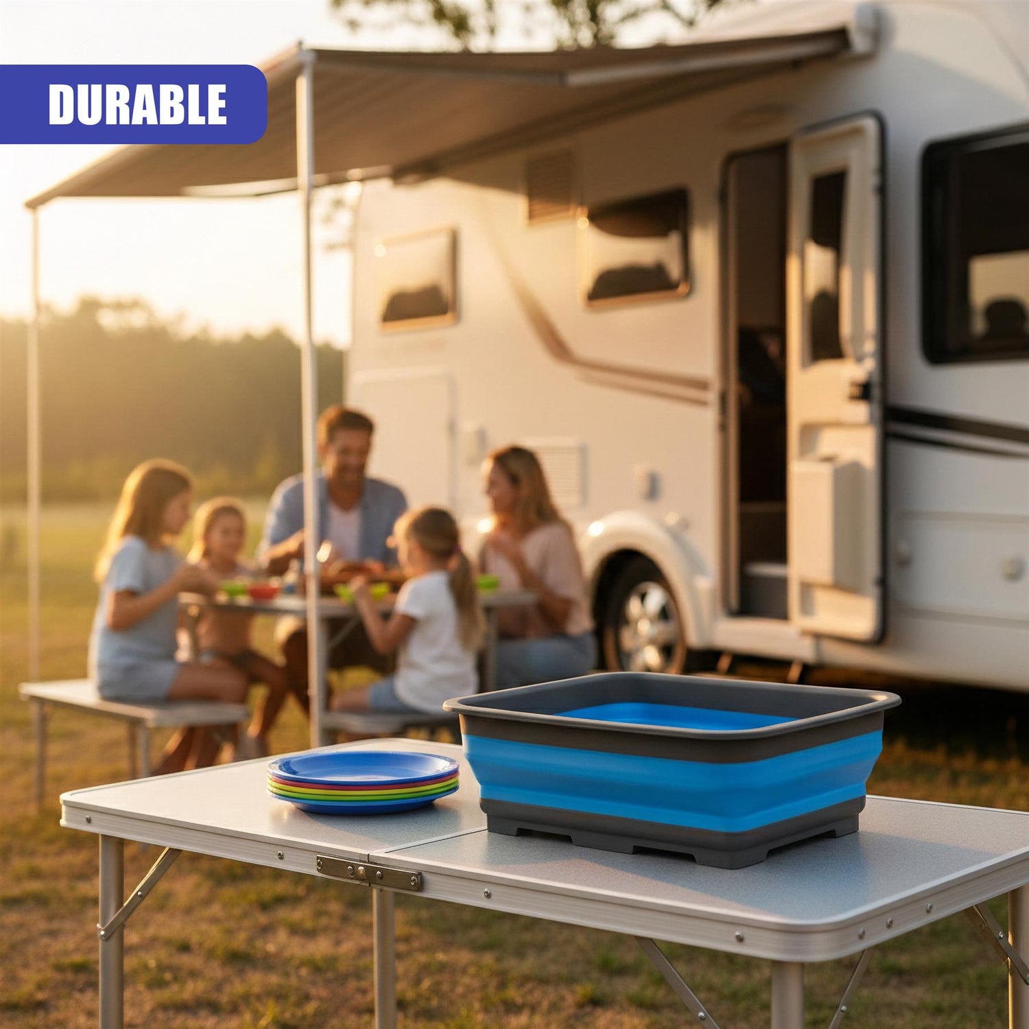 This folding basin is made of high-quality PP and TPR, sturdy and heat-resistant. With strong edges and base, it is durable and can withstand the normal wear and tear of outdoor use. It is eco-friendly, non-toxic, and tasteless.