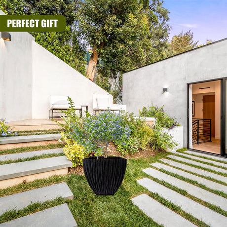 Large Charcoal Black Lotus Square Planter