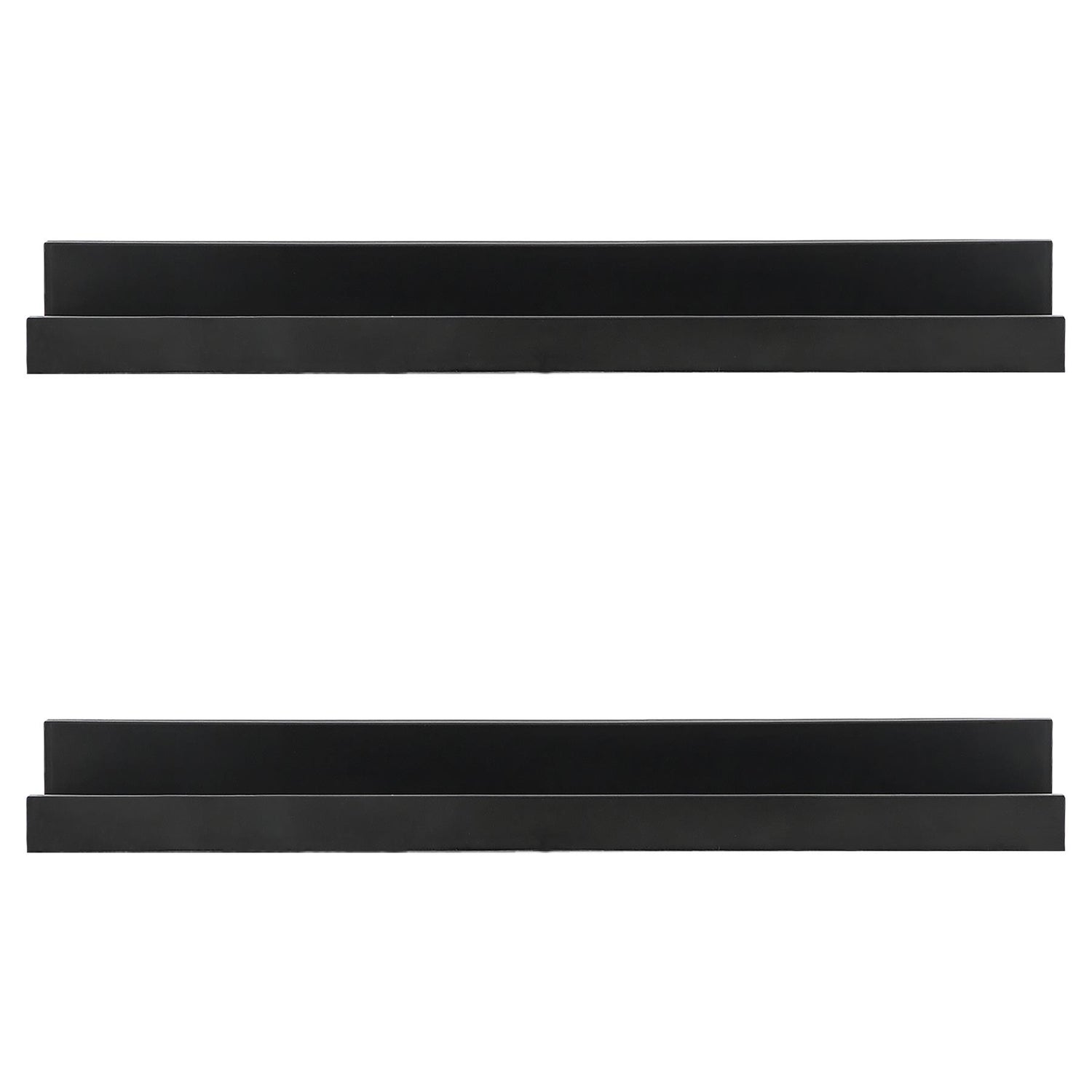 Upgrade your home storage with this GEEZY Set of 2 Black Floating Shelves. Their modern, seamless design is perfect for displaying your favourite décor, pictures, and books. These larger floating shelves are multipurpose, offering storage solutions for any room, including the hallway or office. Easy to install, each display shelf creates a clean, floating appearance, instantly updating your living space.