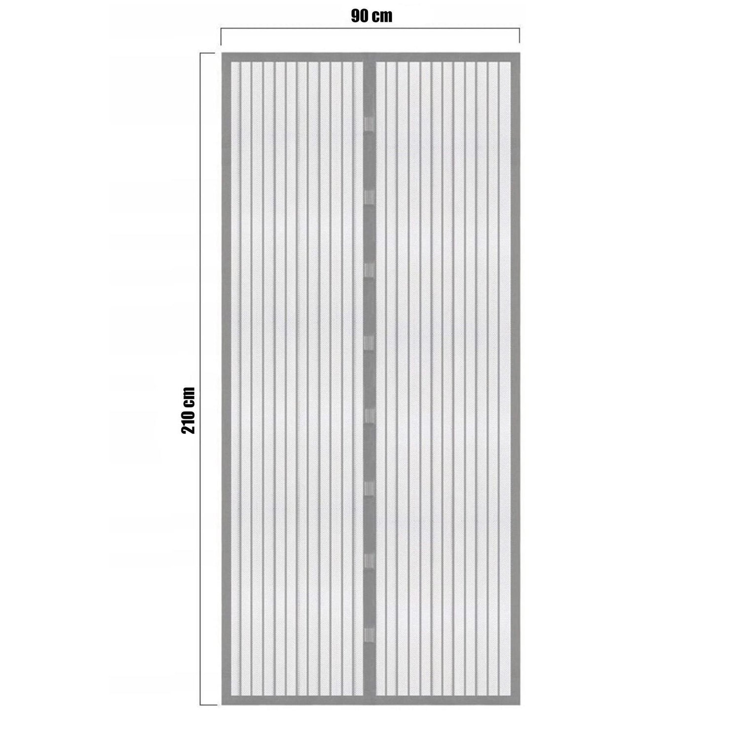 - SPECIFICATIONS: Item Dimensions: Width: 90 cm, Depth: 1 cm, Height: 210 cm / Weight: 220 g / Package Dimensions: Height: 3.5 cm, Width: 32 cm, Depth: 24 cm / Package Weight: 220 g / Material: Polyester / Color: Grey / Includes: Magnetic Door Curtain, Double-Sided Stickers, Thumbtacks.