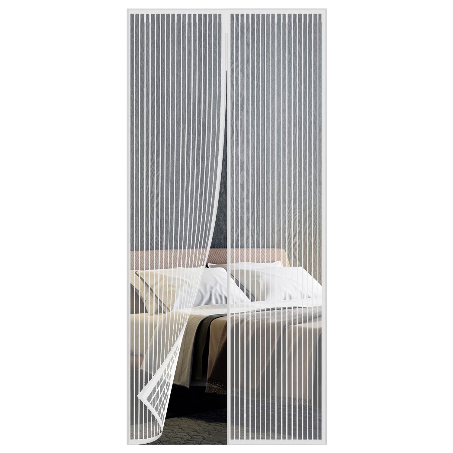 - SPECIFICATIONS: Item Dimensions: Width: 90 cm, Depth: 1 cm, Height: 210 cm / Weight: 220 g / Package Dimensions: Height: 3.5 cm, Width: 32 cm, Depth: 24 cm / Package Weight: 220 g / Material: Polyester / Color: White / Includes: Magnetic Door Curtain, Double-Sided Stickers, Thumbtacks.