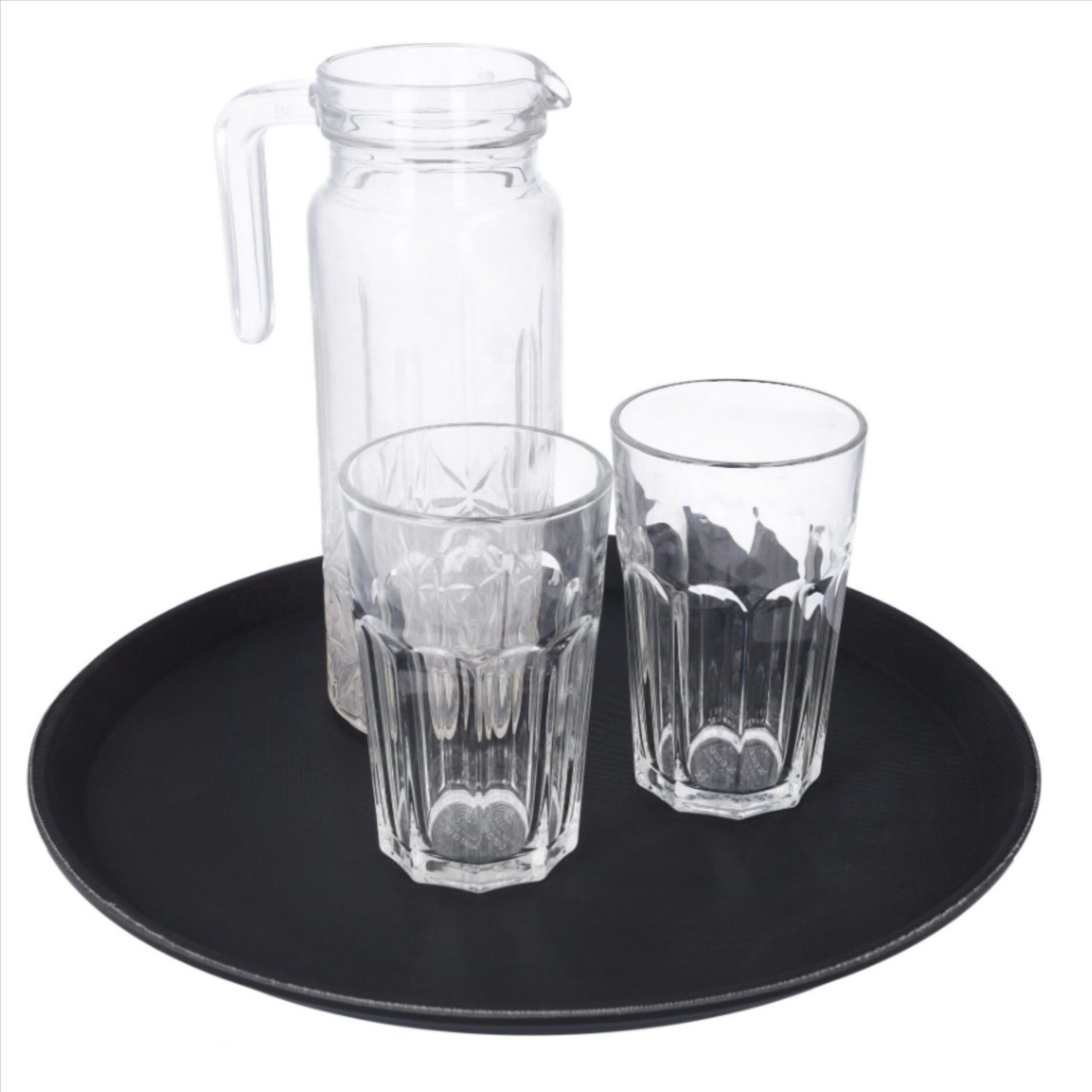 In all kitchens, space is limited to the number of cupboards we have; especially in professional settings, it’s great to have things neatly stacked behind the bar. The tray has a sleek, black finish that complements any decor. Its modern design makes it a stylish addition to any home, office, or restaurant.