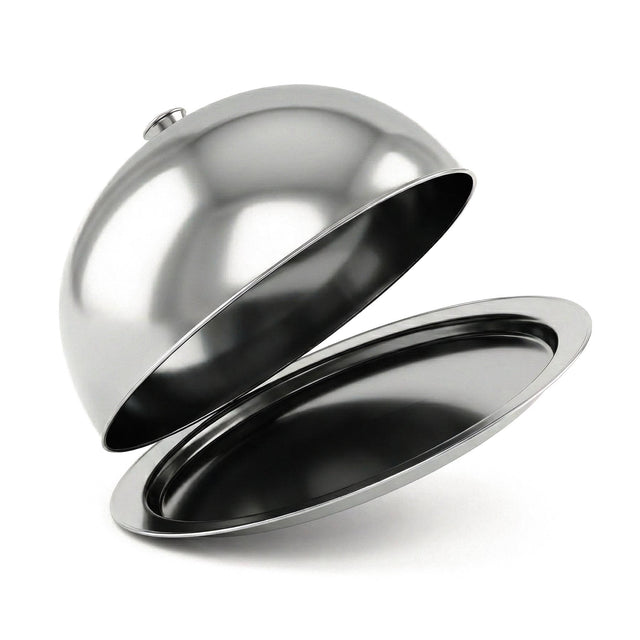 Bring the elegance of fine dining to your own table with our Stainless Steel Cloche Food Cover & Platter. This stylish two-piece set features a polished stainless steel serving dish and a matching domed lid, designed to keep your culinary creations warm and protected. Whether you are serving a gourmet burger, a perfectly cooked steak, or a delicate dessert, this food dome adds a moment of reveal that impresses guests. Robust and easy to clean, it is an essential tool for any home chef who values both taste and presentation.