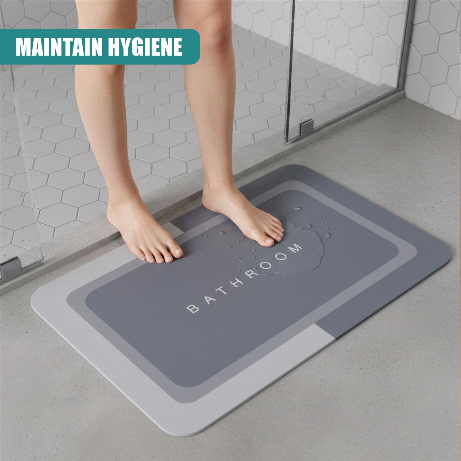 Step out of the shower in comfort and safety with this premium non slip bathroom mat. Featuring an ultra-soft, water-absorbent top layer, it protects your feet from cold tiles while keeping floors dry. The secure rubber backing ensures it stays firmly in place, reducing slip risks. With its elegant grey design and stylish text, this machine-washable anti slip bath mat is a highly practical and beautiful addition to any shower or bathtub setup.