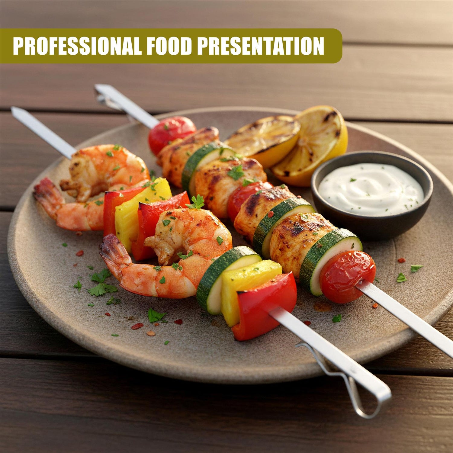 Take your food straight from the heat to the table. These stainless steel skewers are not only practical for cooking but look fantastic for professional food presentation at your next family barbecue.