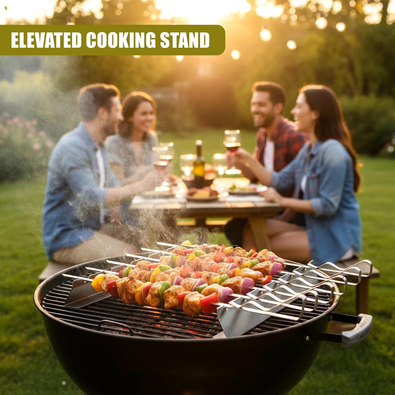 Built for high-heat performance. Both the sturdy BBQ skewer rack and the long metal skewers are crafted from premium, heat-resistant stainless steel for long-lasting reuse.