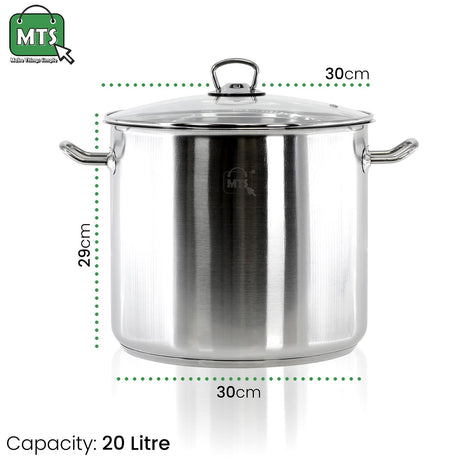 Stainless Steel Stock Pot with Glass Lid - 20 L