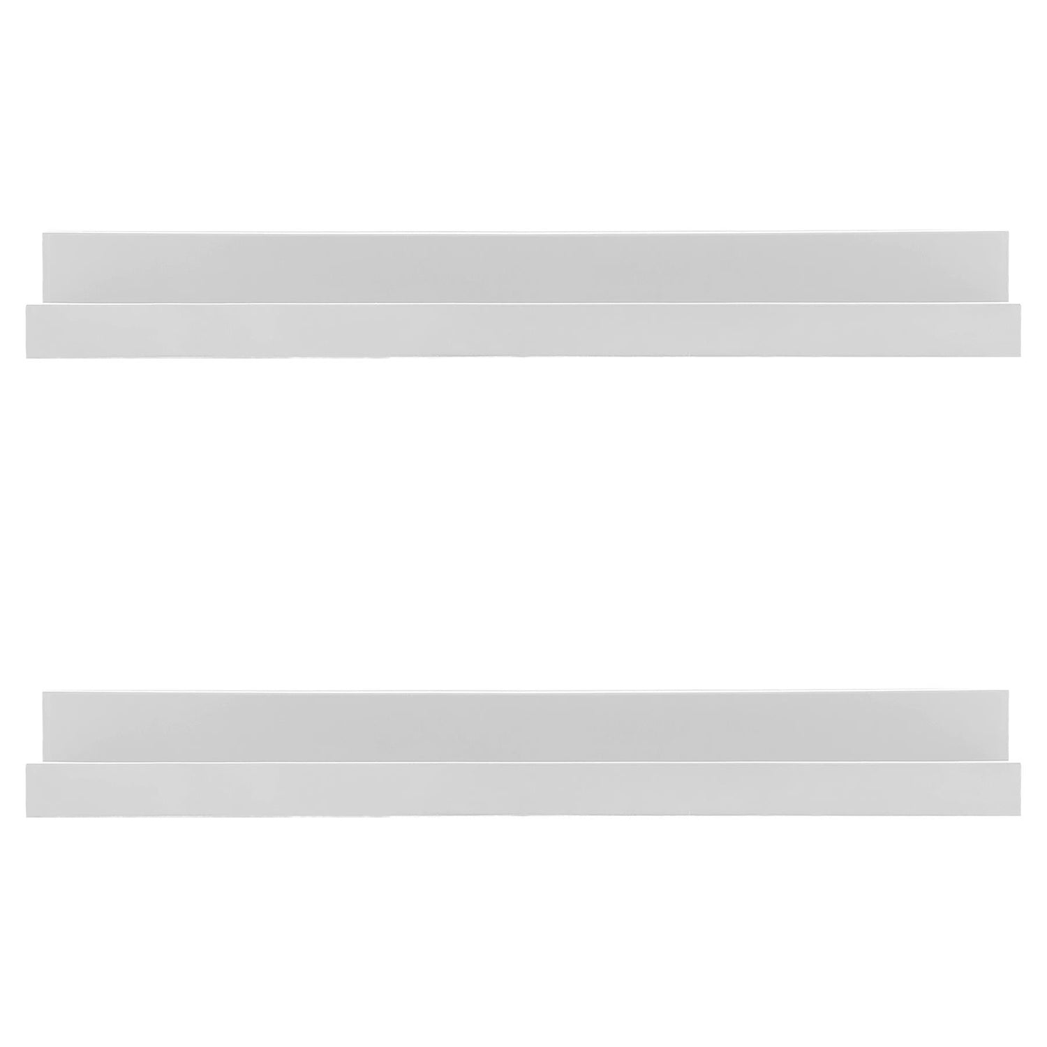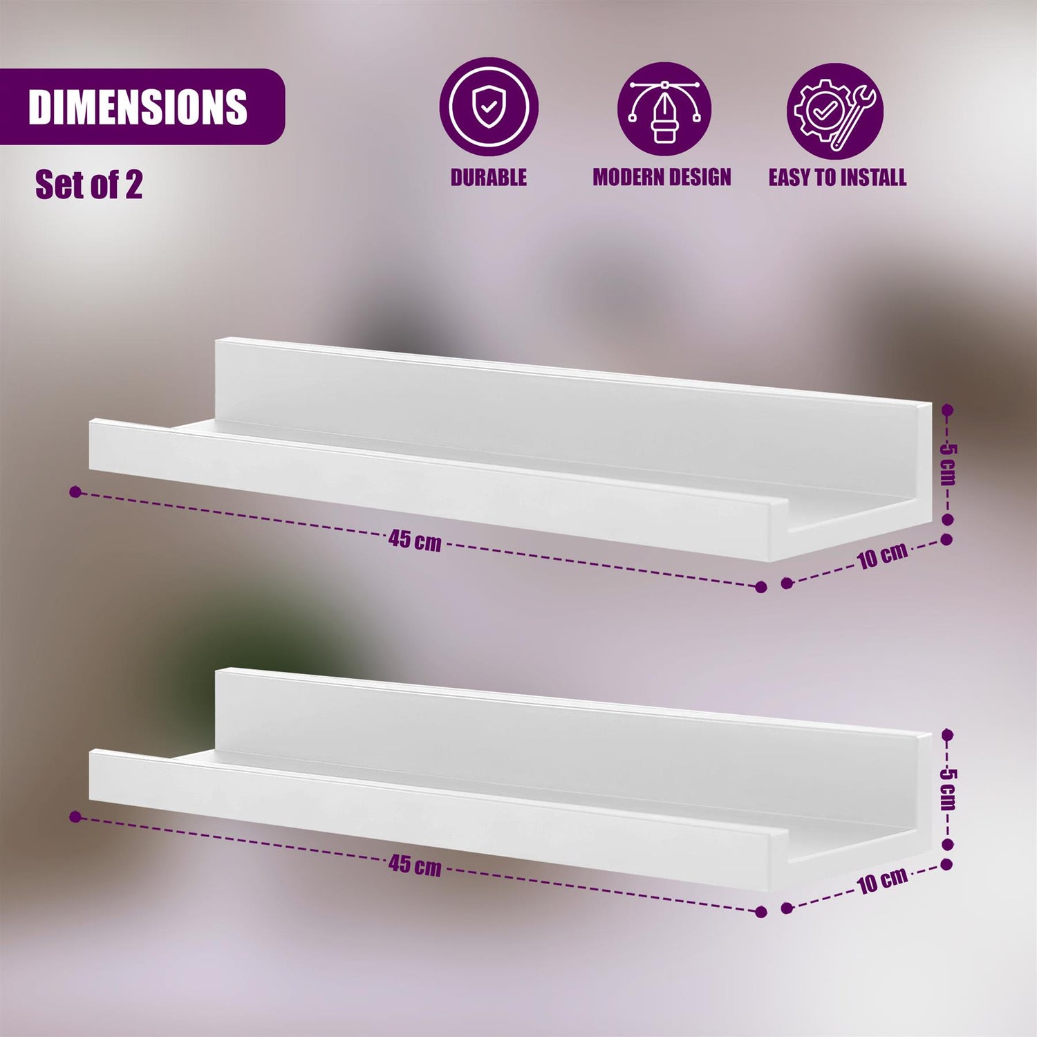 Upgrade your home storage with this GEEZY Set of 2 White Floating Shelves. Their modern, seamless design is perfect for displaying your favourite décor, pictures, and books. These larger floating shelves are multipurpose, offering storage solutions for any room, including the hallway or office. Easy to install, each display shelf creates a clean, floating appearance, instantly updating your living space.
