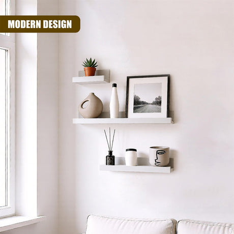 White Floating Wall Shelves Set of 3