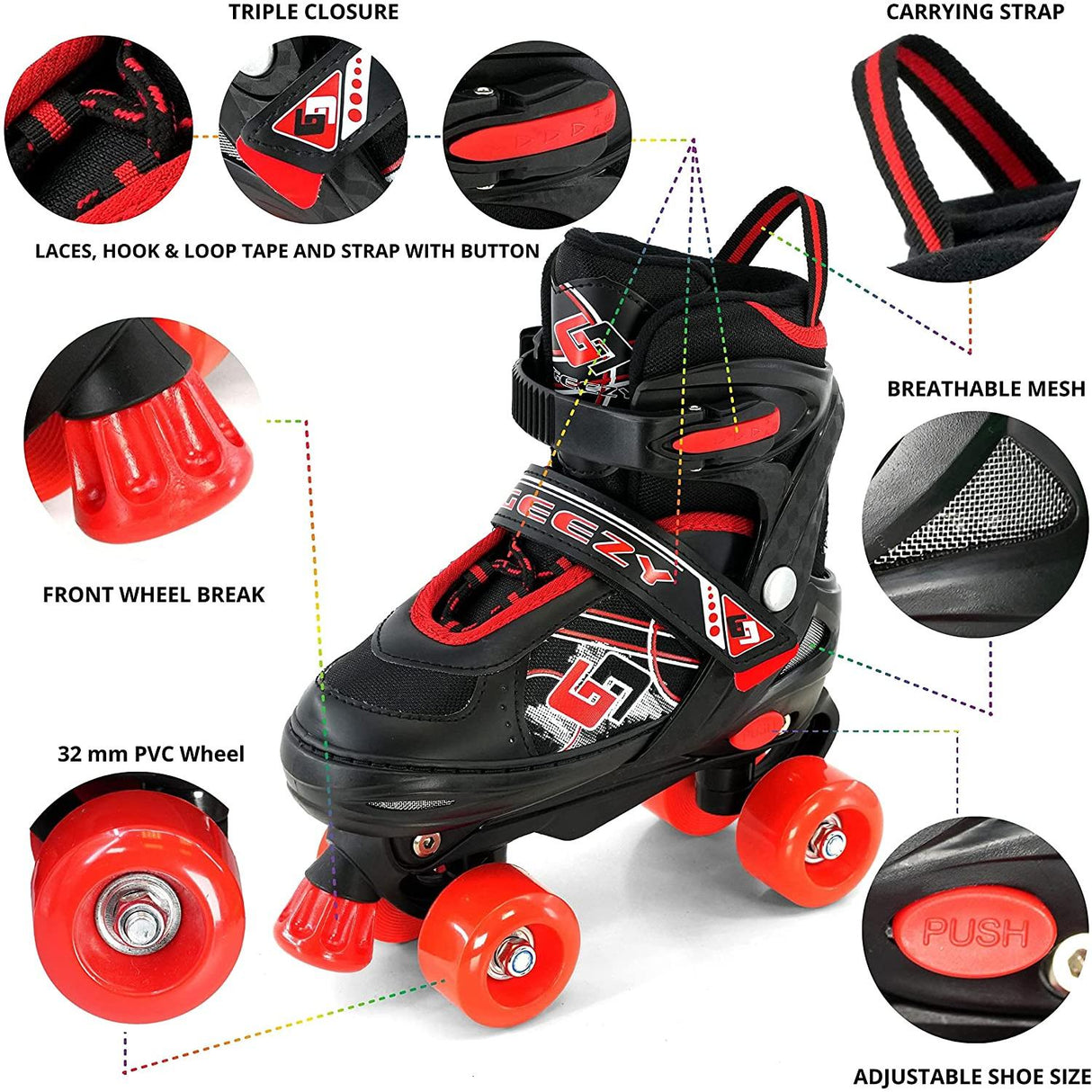 Red and Black Roller Skates for Kids with 4 Wheel - Small is backordered and will ship as soon as it is back in stock.