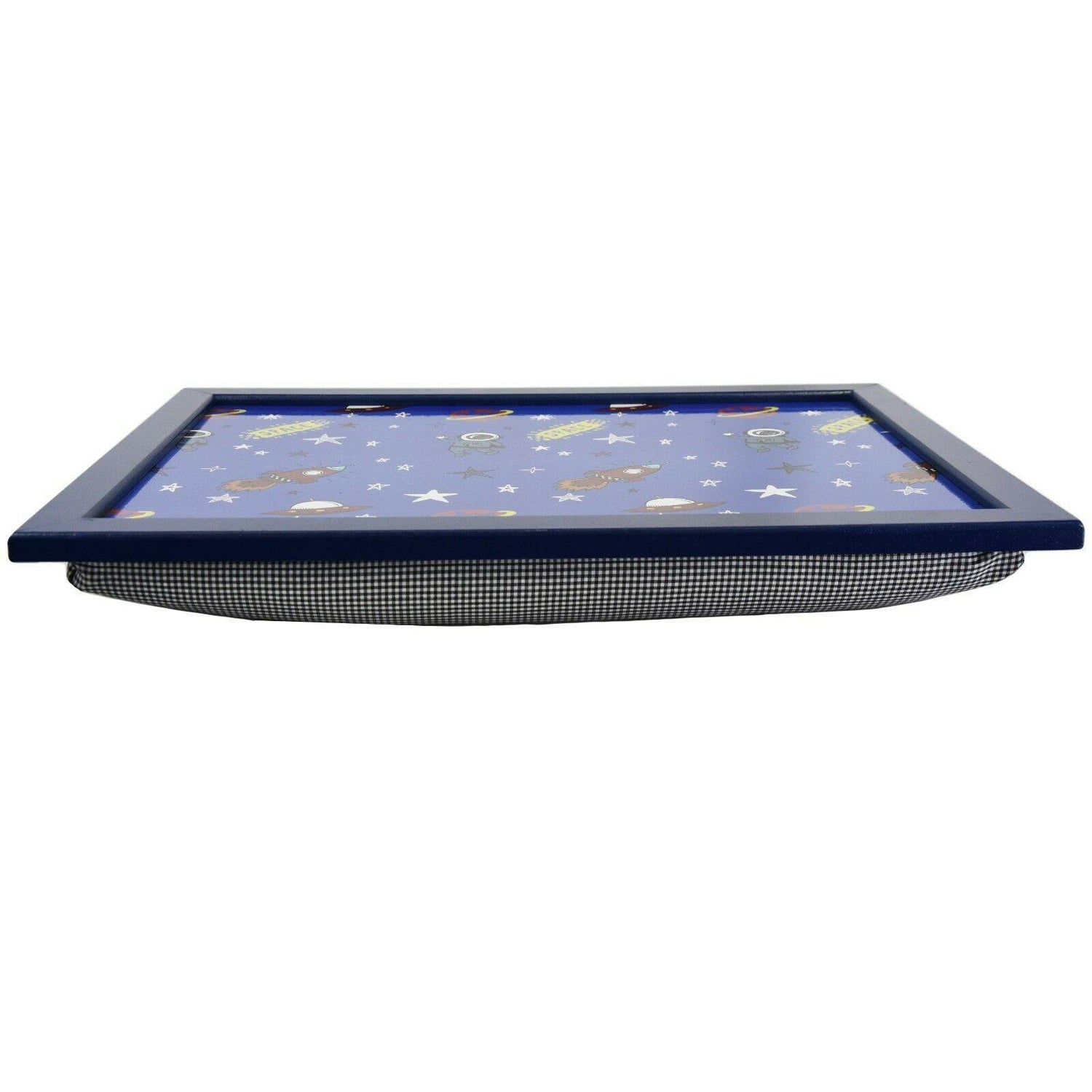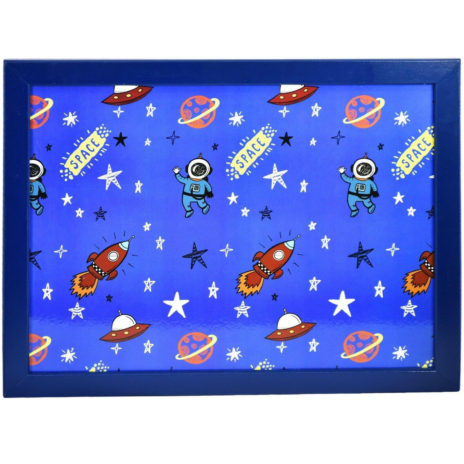 THEMED DESIGN: Featuring rockets, UFOs, astronauts, and stars, this lap tray with cushion brings the wonders of space right into your child’s daily routine.