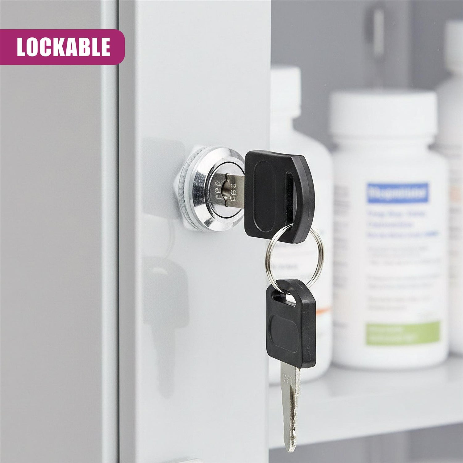 Keep medication safe from children with this lockable medicine cabinet. Features a secure lock with two keys, ensuring dangerous supplies are stored safely away.